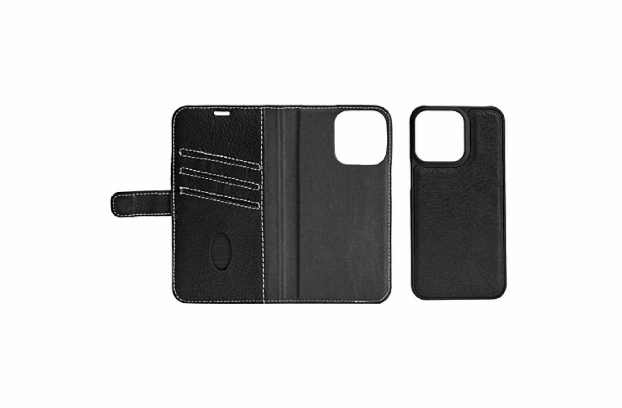 Denna exklusiva läderplånbok kombinerar stil, funktion och flexibilitet. Med sitt avtagbara fodral kan du enkelt använda mobilen separat, samtidigt som den förblir skyddad i ett slitstarkt hölje. Perfekt för dig som vill ha både skydd och en tidlös design i ett och samma tillbehör.