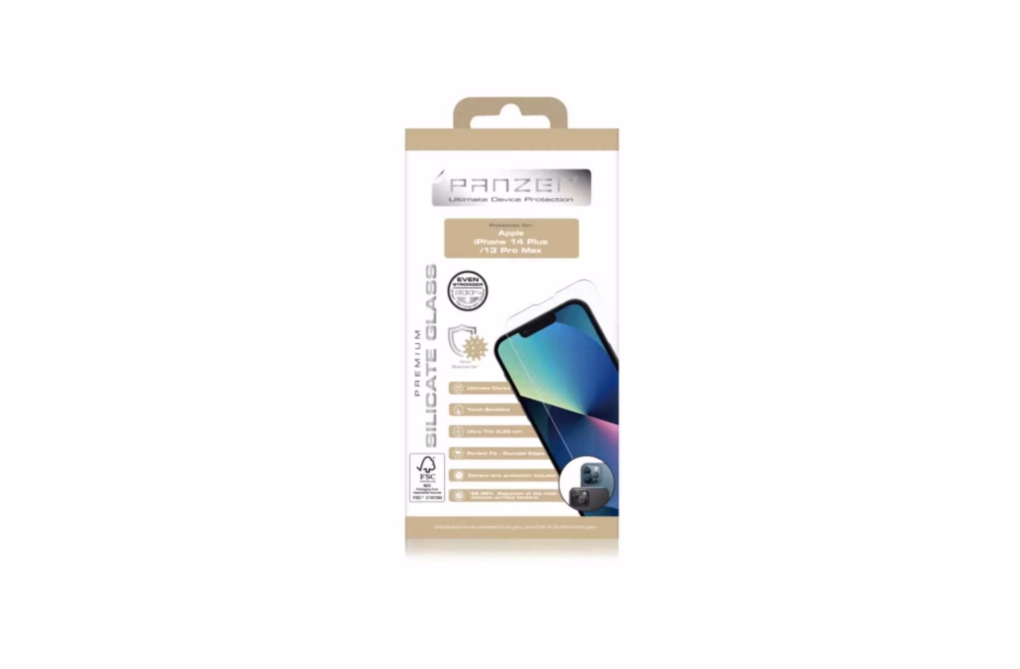 PANZER® Premium Silicate Glass är det ultimata skärmskyddet för dig som vill ha maximal styrka och trygghet för din iPhone 13 Pro Max eller 14 Plus.